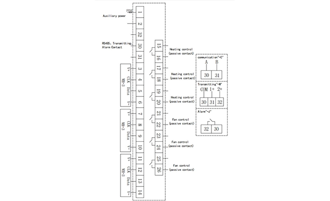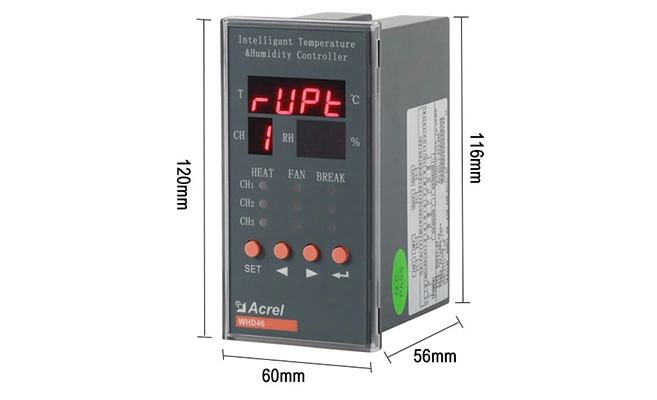 Exactitud Temperatura ± 1 ℃ Humedad ± 5% RH Fuente de alimentación auxiliar AC 85-265V, DC 100-350V Consumo Fuente de alimentación auxiliar: Consumo de energía básica (≤ 0,8 W) Consumo de energía del relé (cada canal ≤ 0,7 W) |